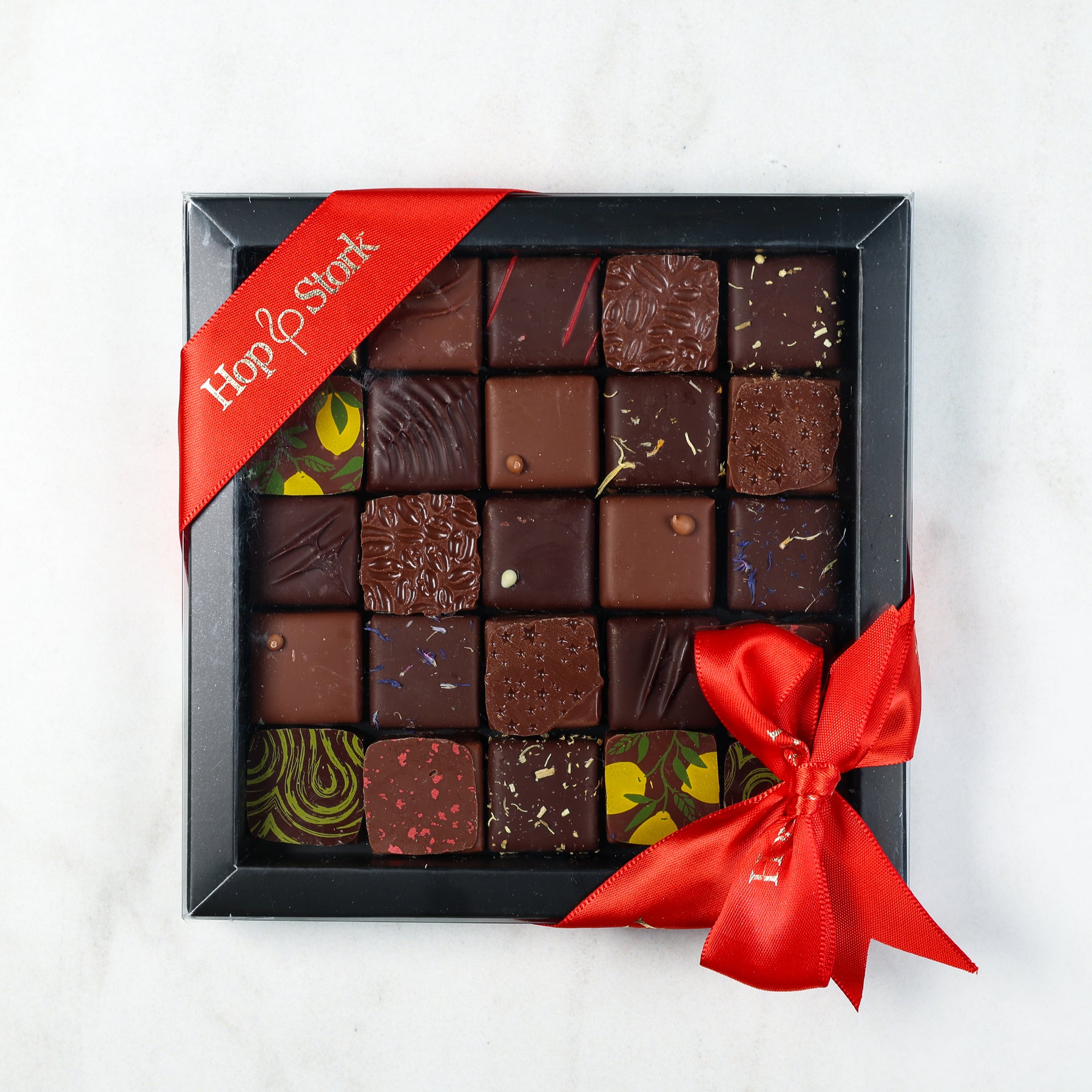 Allergenen informatie: bevat soja, en lactose en mogelijk noten en/of gluten. Vullingen met noten bevatten noten (geen pinda’s), vullingen met koekjes bevatten gluten. Al onze producten kunnen sporen van noten, lactose en gluten bevatten